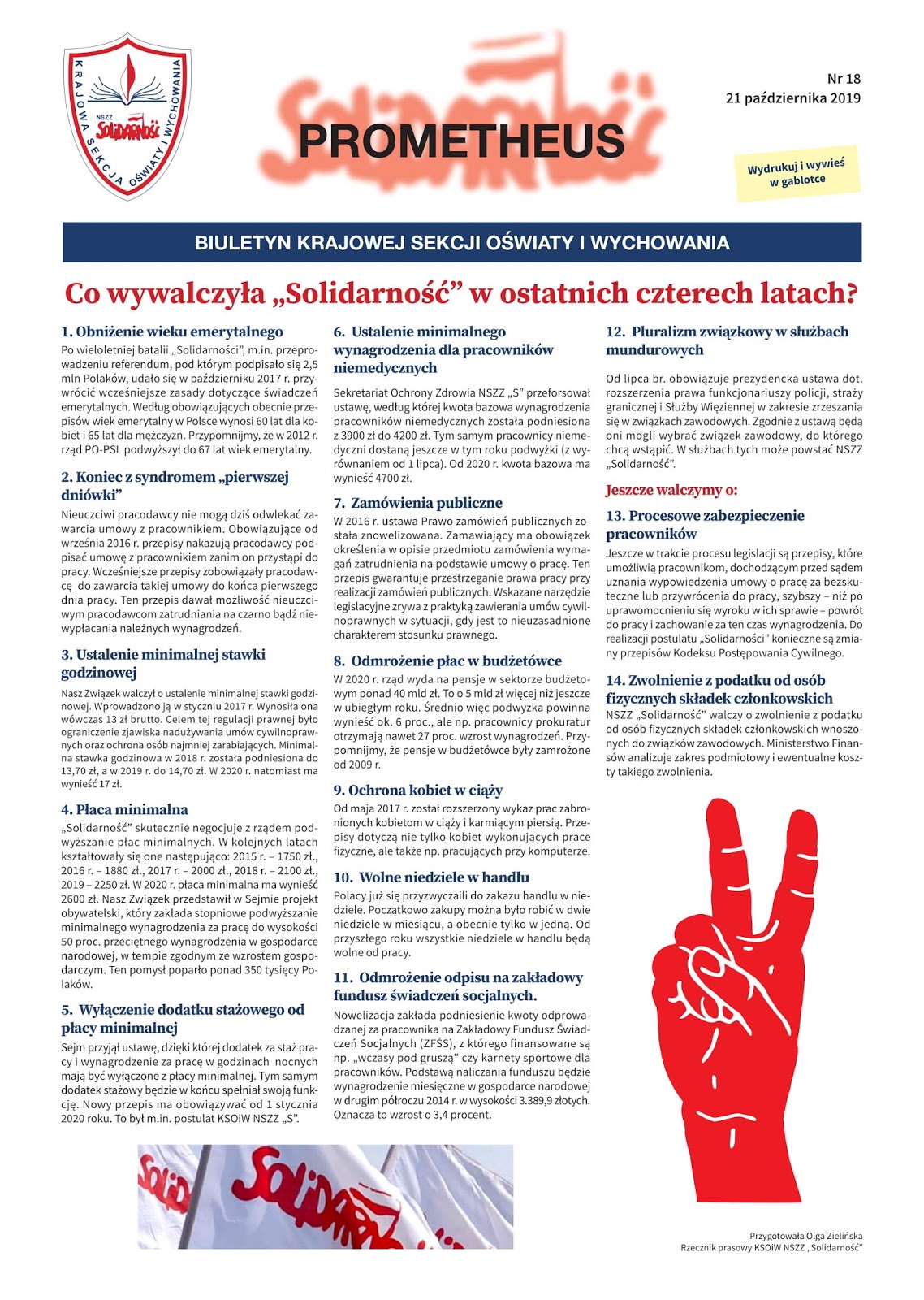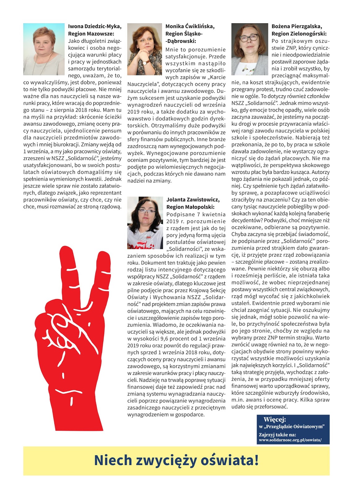- Przedstawiono informację o realizacji uchwały Rady z 9 kwietnia br. ws. zwołania nadzwyczajnego Walnego Zebrania Krajowej Sekcji Oświaty i Wychowania NSZZ „Solidarność” (odbędzie się w poniedziałek, 24 czerwca br. w Warszawie). Chodzi o podjęcie próby odwołania Ryszarda Proksy, przewodniczącego KSOiW, będącego jednocześnie powiatowym radnym PIS-u (Ostrowiec Świętokrzyski). R. Proksa w niedzielę, 7 kwietnia 2019 r. podpisał haniebne porozumienie z rządem, które spowodowało lawinę wystąpień nauczycieli z NSZZ "Solidarność". Przewodniczący ma poparcie Piotra Dudy, szefa NSZZ S i delegatów większości sekcji regionalnych, dlatego zamiar odwołania go z funkcji może zakończyć się status quo (niezmienionym stanem rzeczy). Naszą Sekcję reprezentuje 10 delegatów.