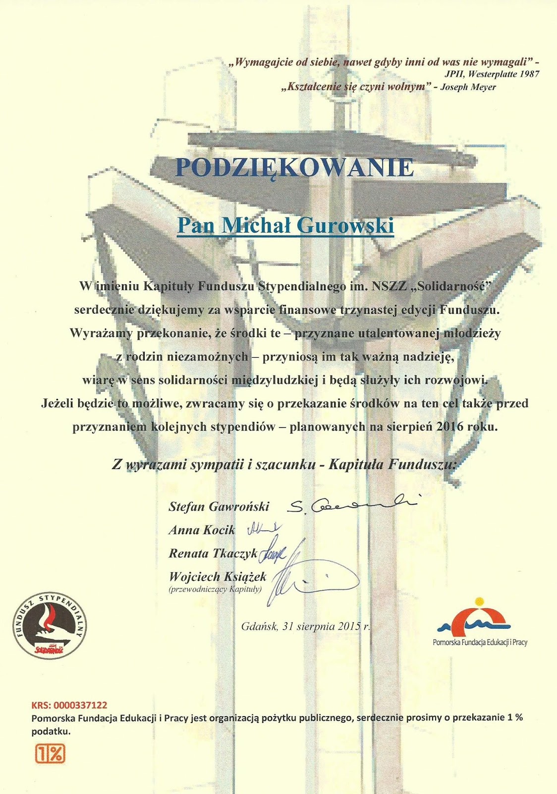 Protokół zbiorczy przeprowadzonych ankiet (widoczny poniżej na 3 arkuszach) przygotował, zestawił, obliczył, opracował oraz wysłał do Wojciecha Książka i Przewodniczących Kół Michał Gurowski, przewodniczący KM NSZZ „Solidarność” P.O.iW. Ziemi Kościerskiej.