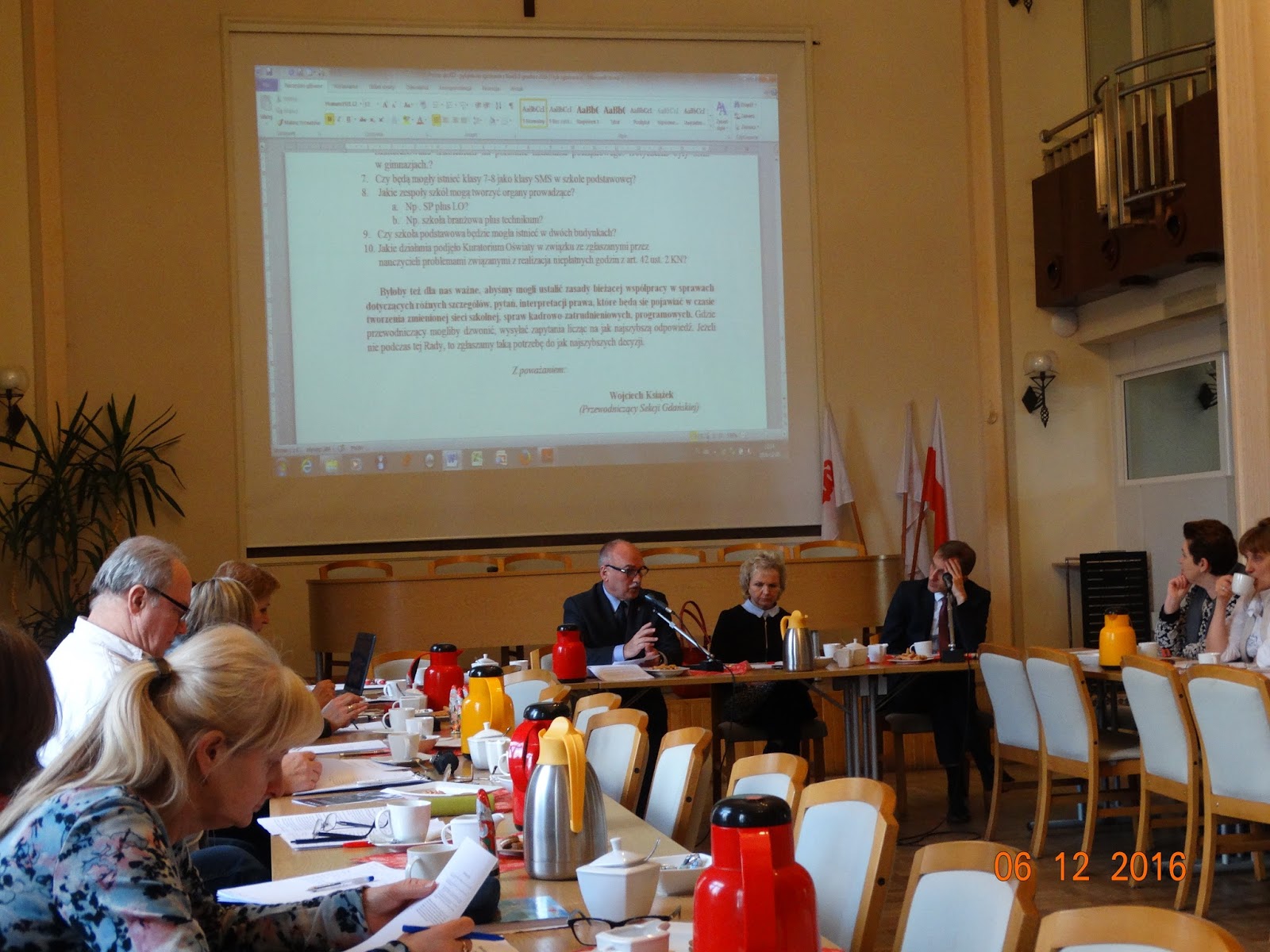 Obecny na zebraniu Zdzisław Jan Brzeziński (zastępca przewodniczącego) reprezentujący KM NSZZ "Solidarność" POiW Ziemi Kościerskiej, przypomniał, że zebrania Rady Sekcji są zwoływane już od 5 lipca, czyli pełne 4 miesiące, powtarzają się te same biadolenia i lamenty, a niszczenie polskiej oświaty już się rozpoczęło i trwa w najlepsze (a raczej w najgorsze). Zaapelował, aby przyjąć stanowisko, totalne przeciw reformie edukacji. Niestety, wcześniej przygotowany projekt nie sprzeciwiający się reformie, został przyjęty bez zmian.